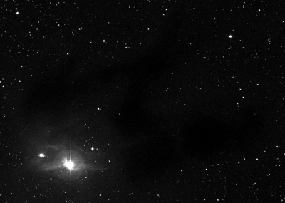 100/150mm - Tento Barnard se nachází hned vedle B26+B28. Vizuálně tyto 3 tmavé mlhoviny nejsem schopen od sebe rozlišit. Slévají se do jednoho tmavého chomáče. Zvětšení 36x. Petr
